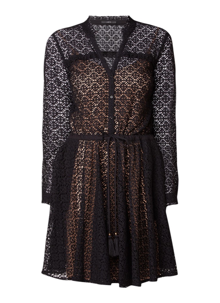 Sandro A-lijn jurk met opengewerkt dessin en inzet van kant zwart