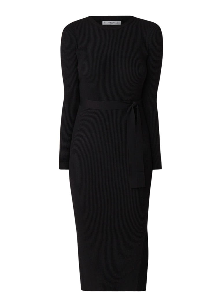 Maje Ringley fijngebreide jurk met split zwart