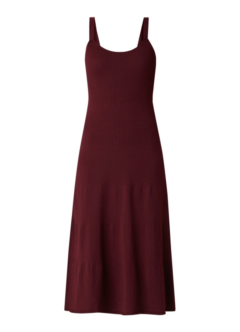 Hugo Boss Sandreyya fijngebreide midi-jurk met streepdetail donkerrood
