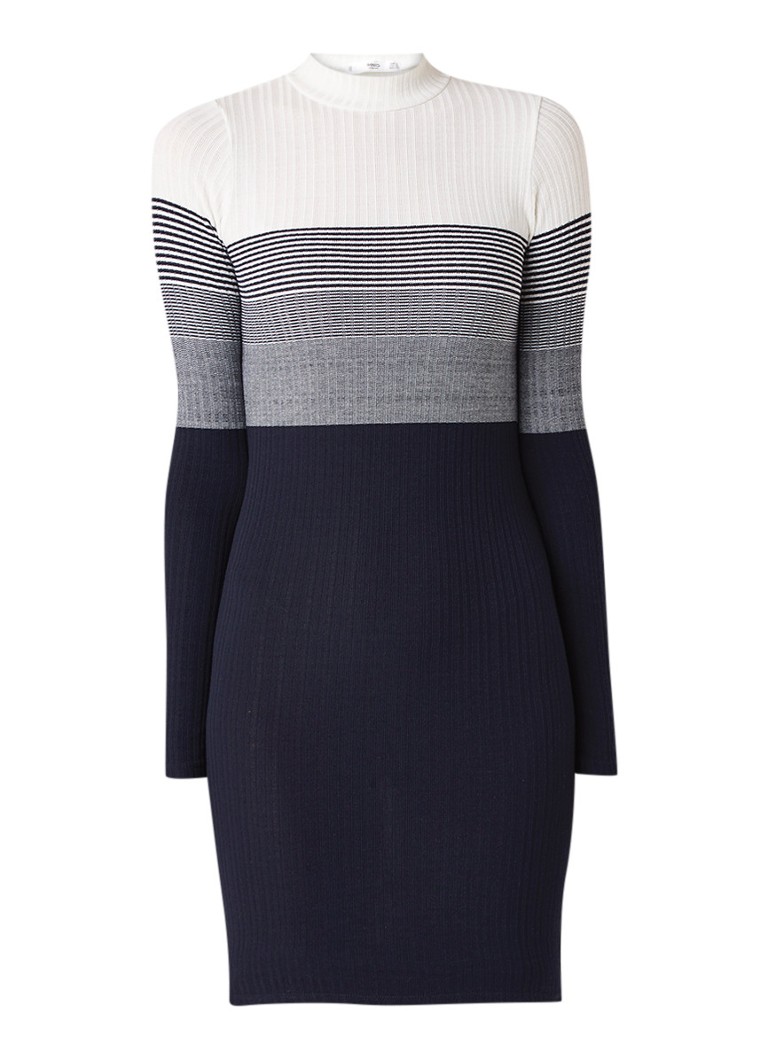MO&Co. Fijngebreide jurk met streepdessin blauw
