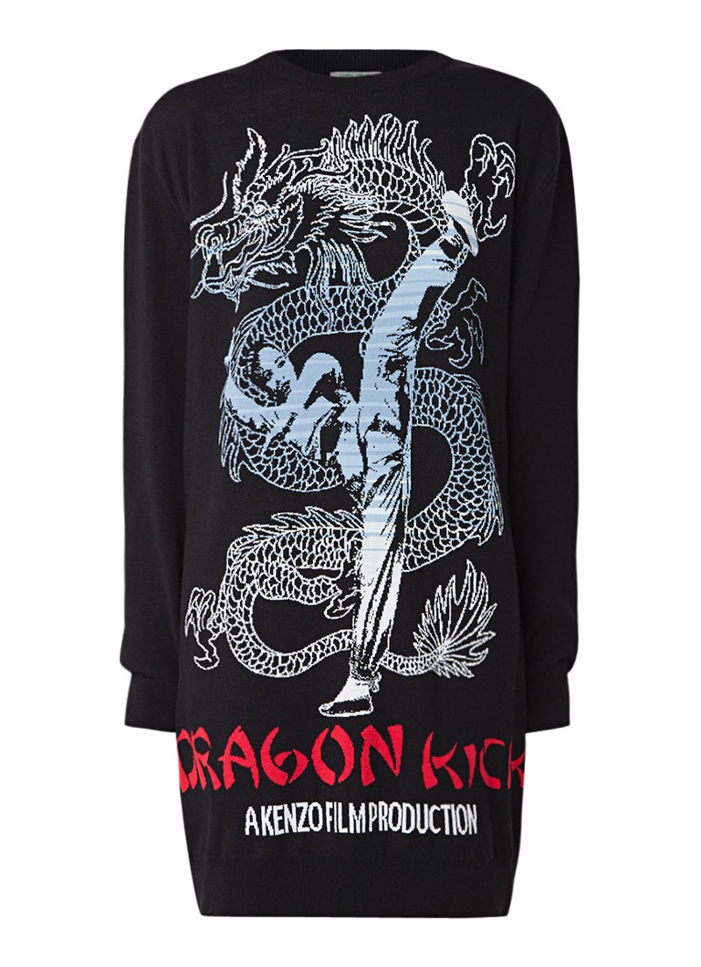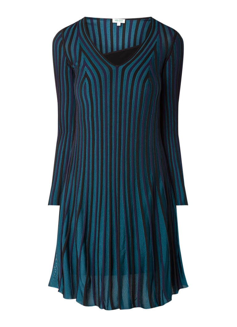 Kenzo Fijngebreide A-lijn jurk met print royalblauw