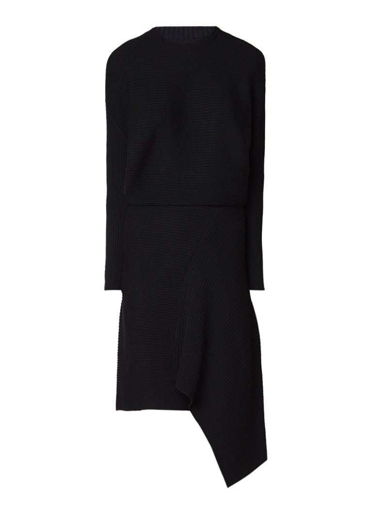 Reiss Evette ribgebreide midi-jurk met halve rits zwart