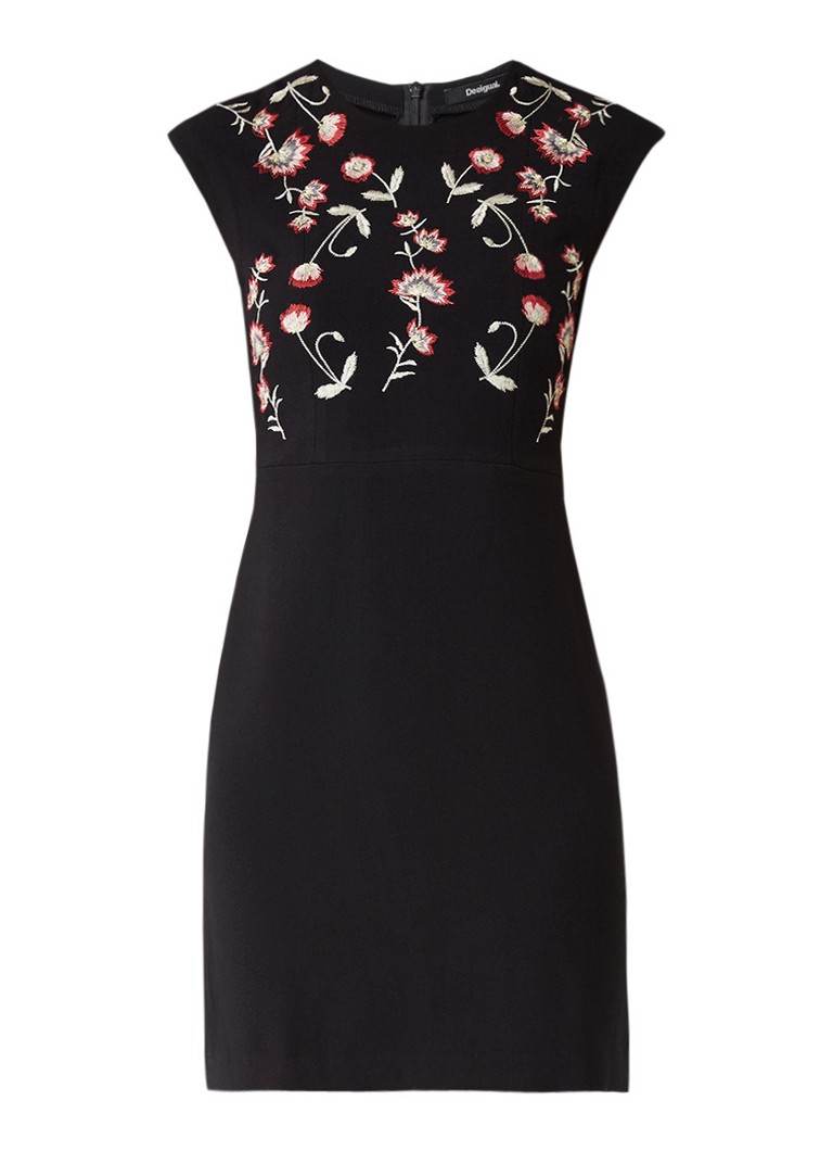 Jurk met opengewerkte details met gekleurde underlay zwart