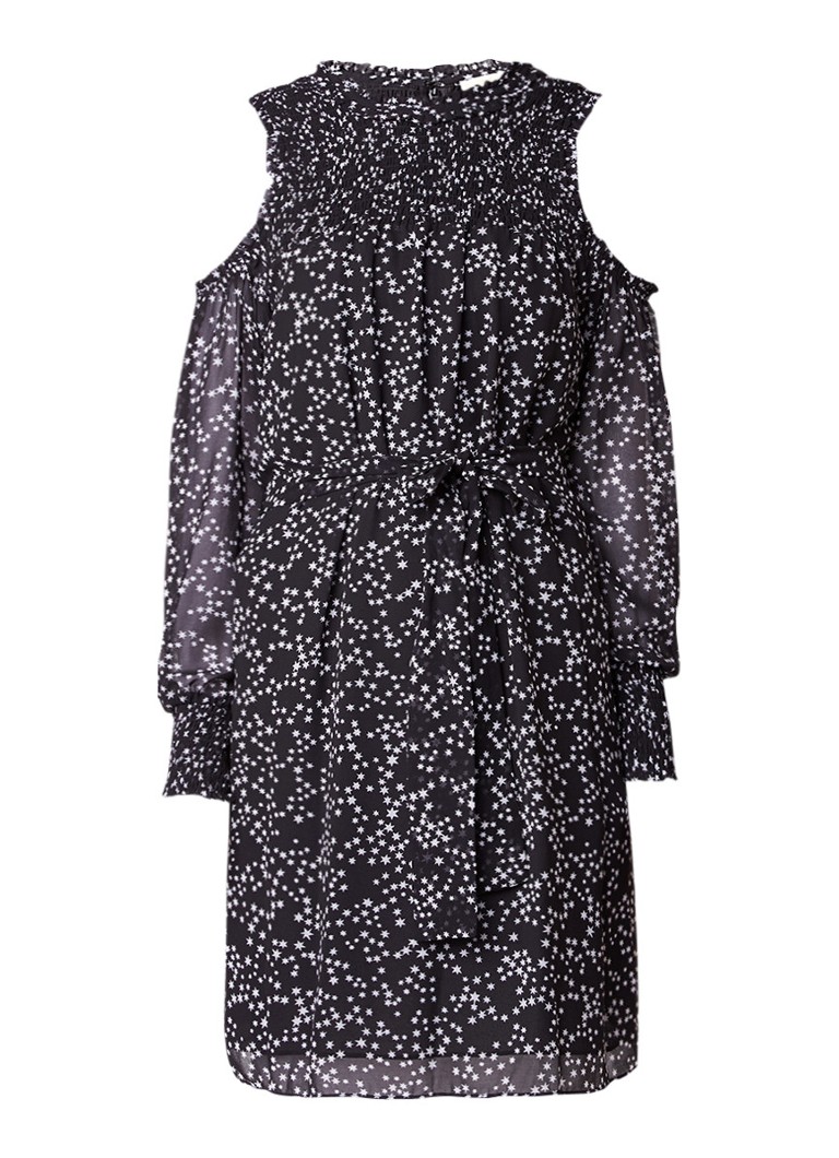 Shooting Star cold shoulder jurk met sterrenprint zwart
