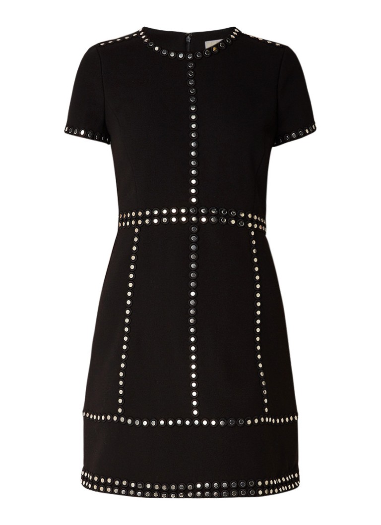 A-lijn jurk met eyelet detail en studs donkerblauw