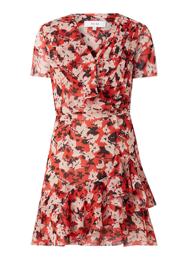 Ashe jurk van zijde met grafisch dessin zalmroze
