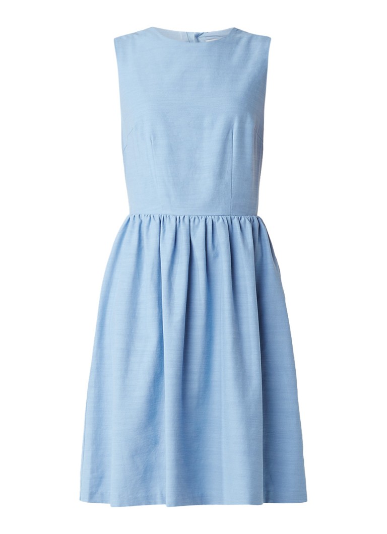 Evelyn mouwloze A-lijn jurk met keyhole lichtblauw