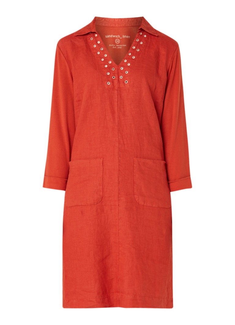 Sandwich Jurk van linnen met mouwen van jersey steenrood